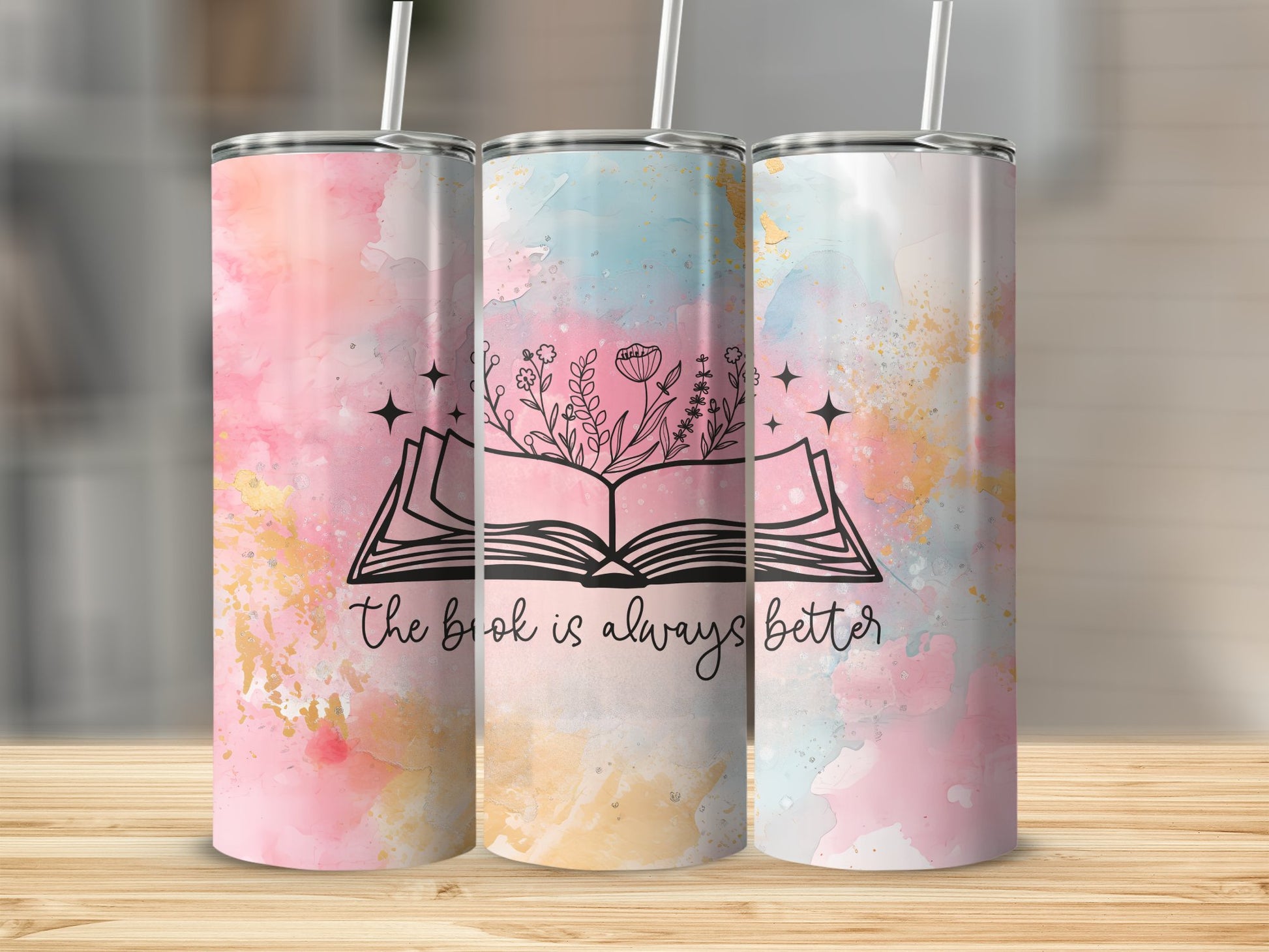 Alcohol ink The book is always Better Stainless Steel Tumbler